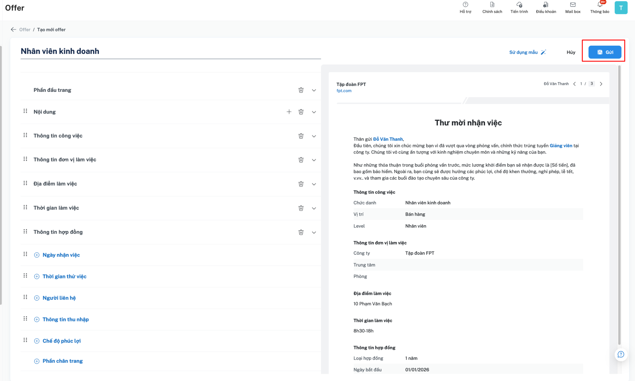 Offer tương ứng sẽ được đính kèm vào email offer gửi tới ứng viên.